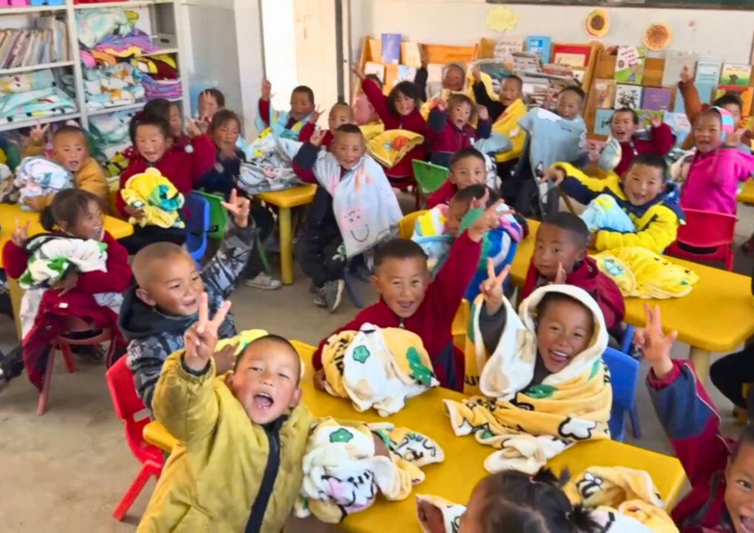 Children in our rural classroom cozy up in donated blankets, their heartfelt thanks reminding us why we persist.