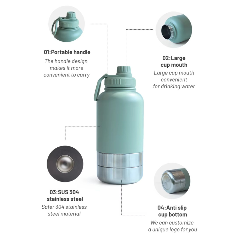 3 in 1 Style Portable Stainless Steel Pet Outdoor Travel Drinking Insulated Dog Water Bottle