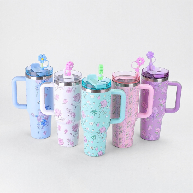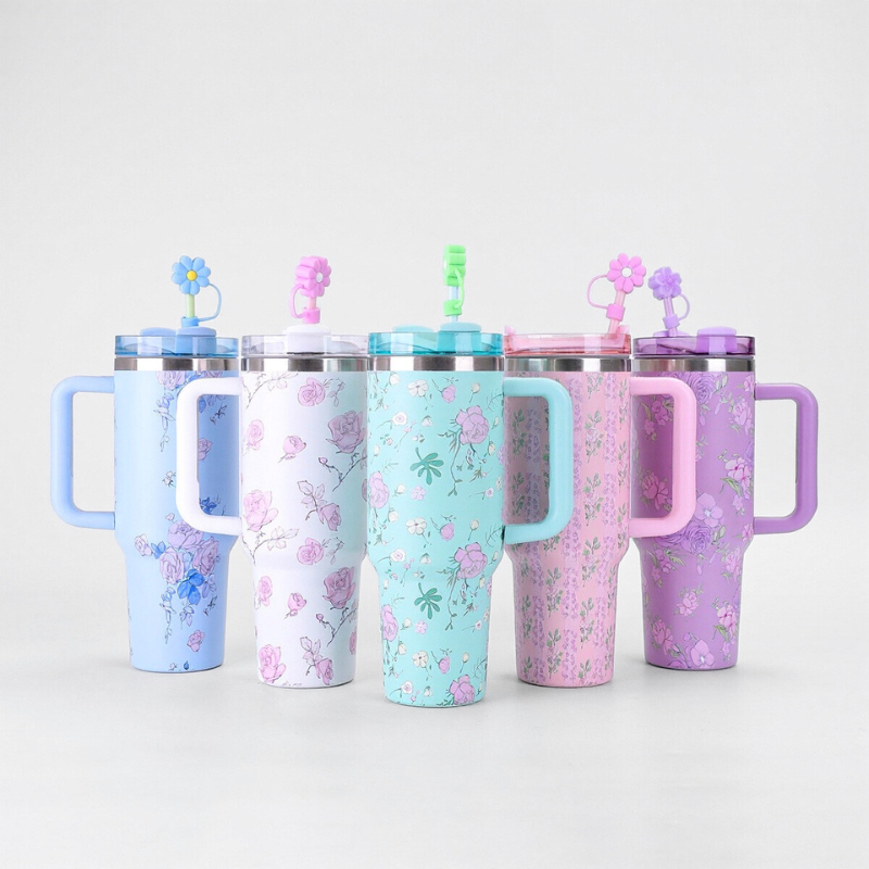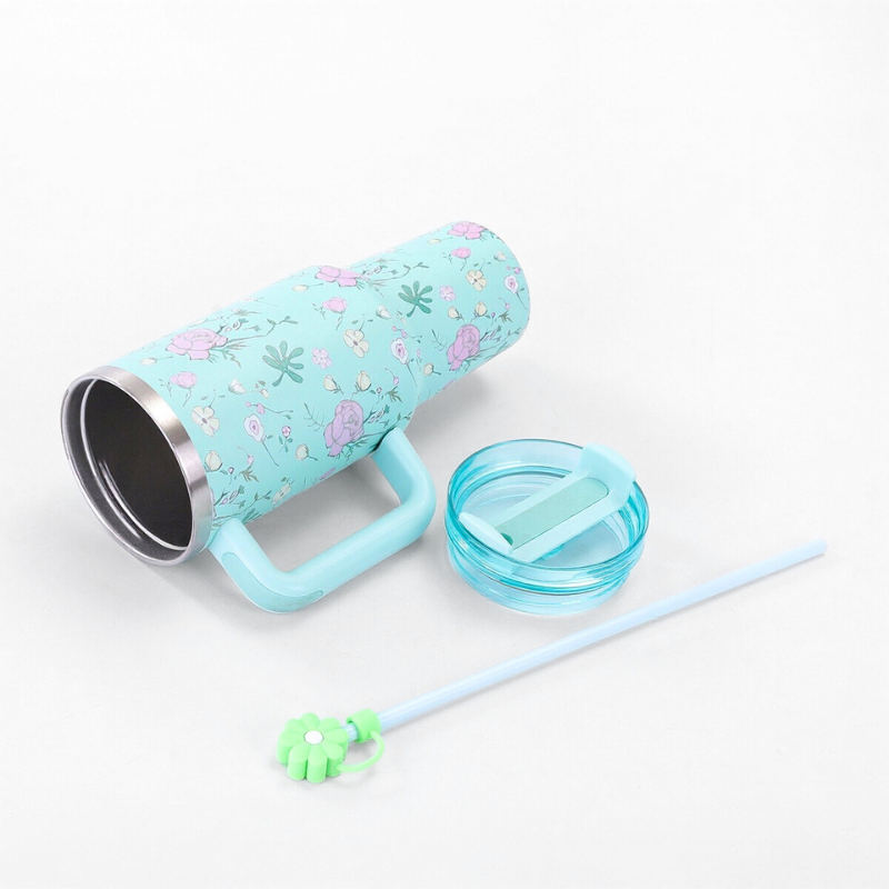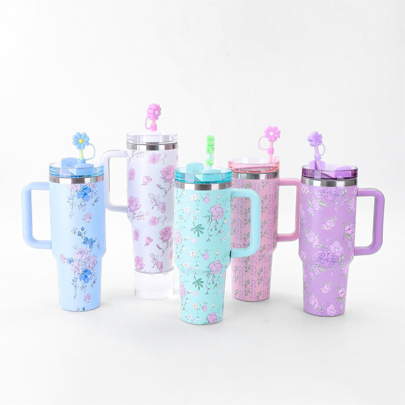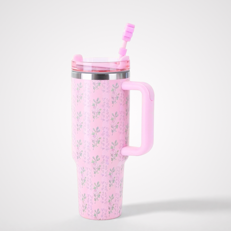 40oz Flower Tumbler Mug with Straw and Handle