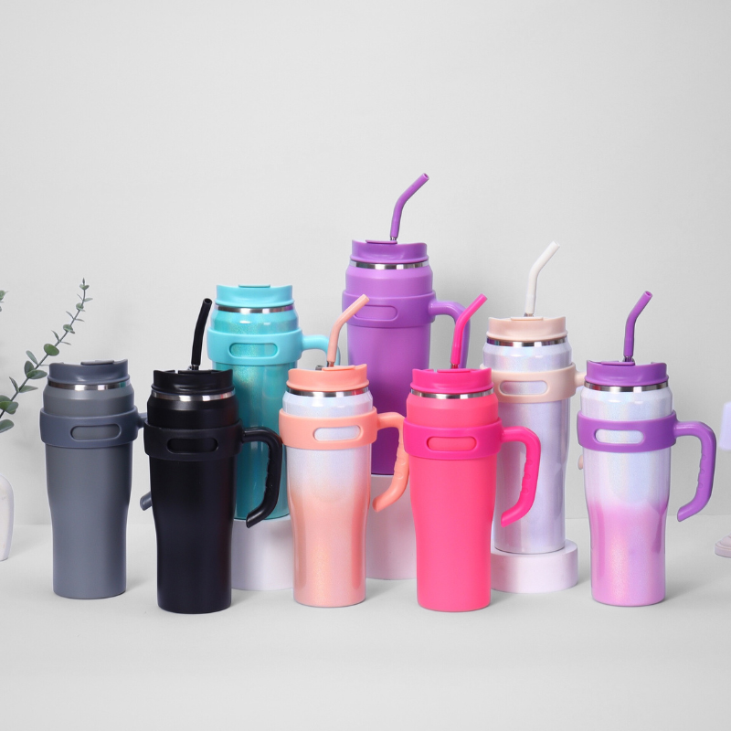 40oz rainbow Tumbler Insulated Vacuum Stainless Steel Double Wall with Handle Mug