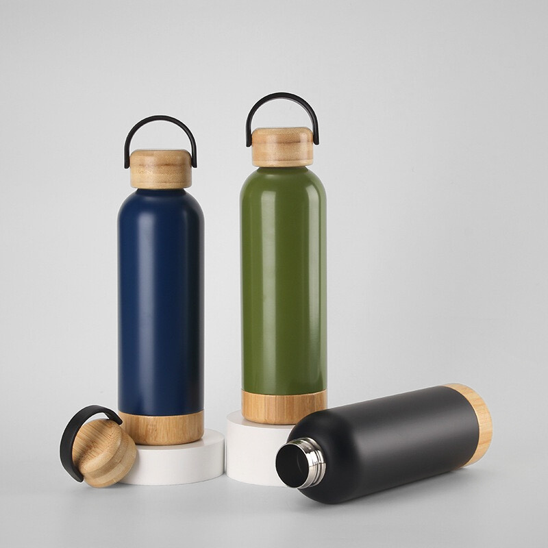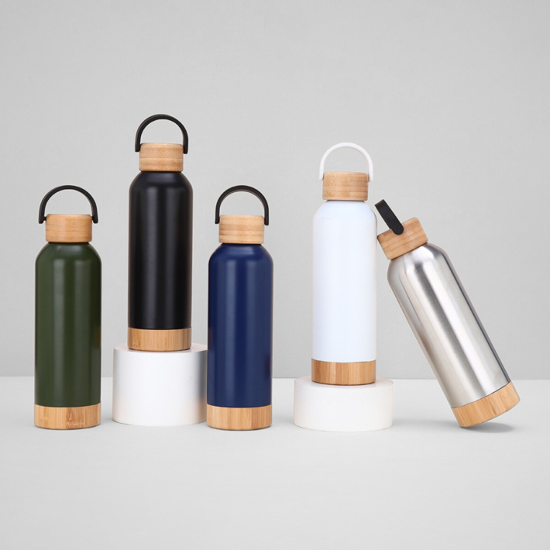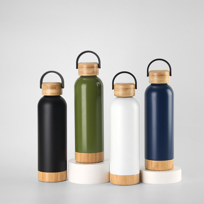 500ML Unique Double Wall Stainless Steel Insulated Water Bottle with Bamboo Lids and Bottom