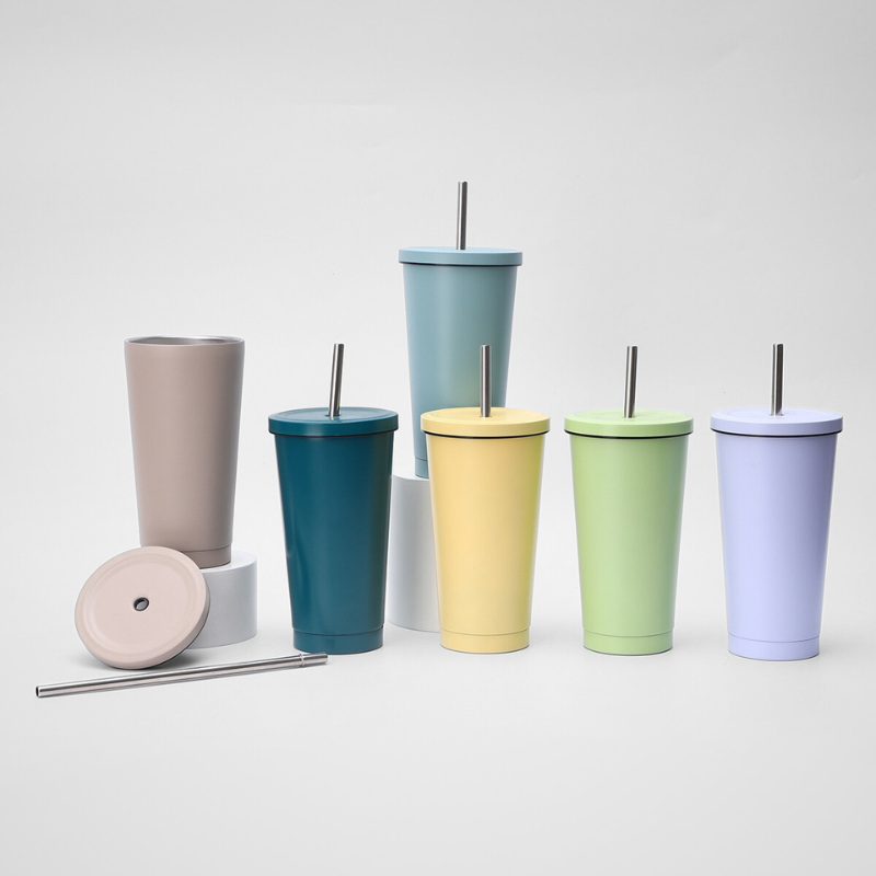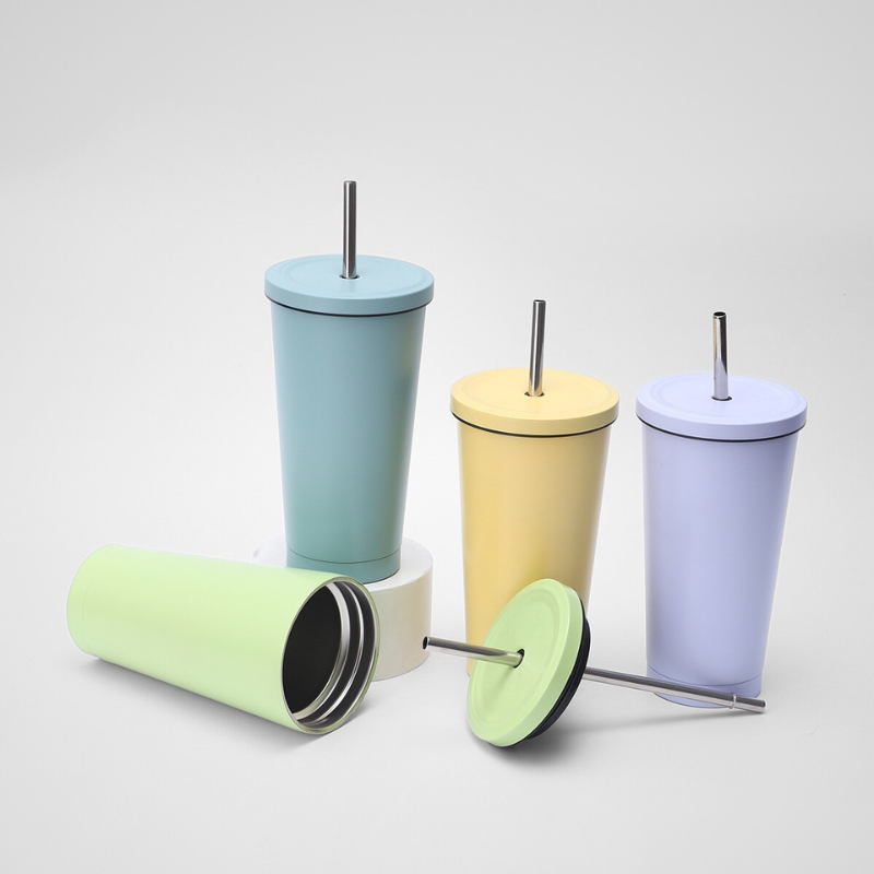 Stainless Steel Double Walled Vacuum Reusable Water Tumbler With Straw