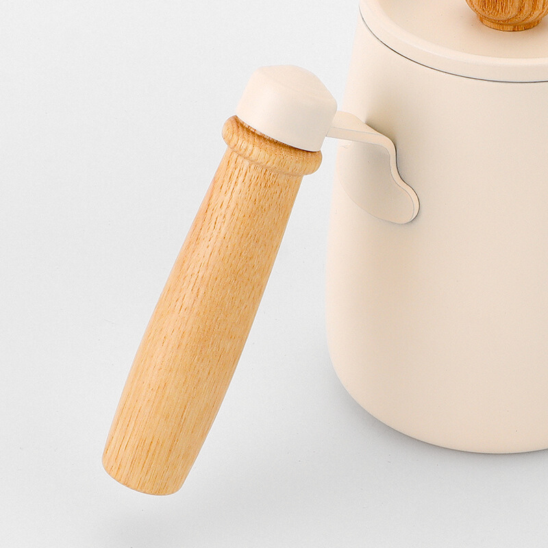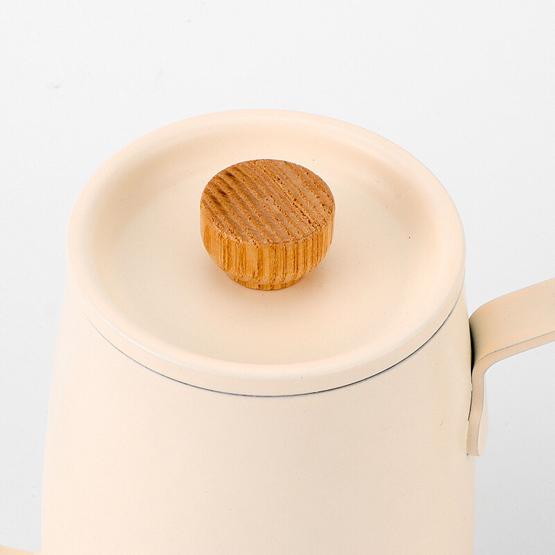 600ml Cream Coffee Kettle With Wooden Handle And Lid