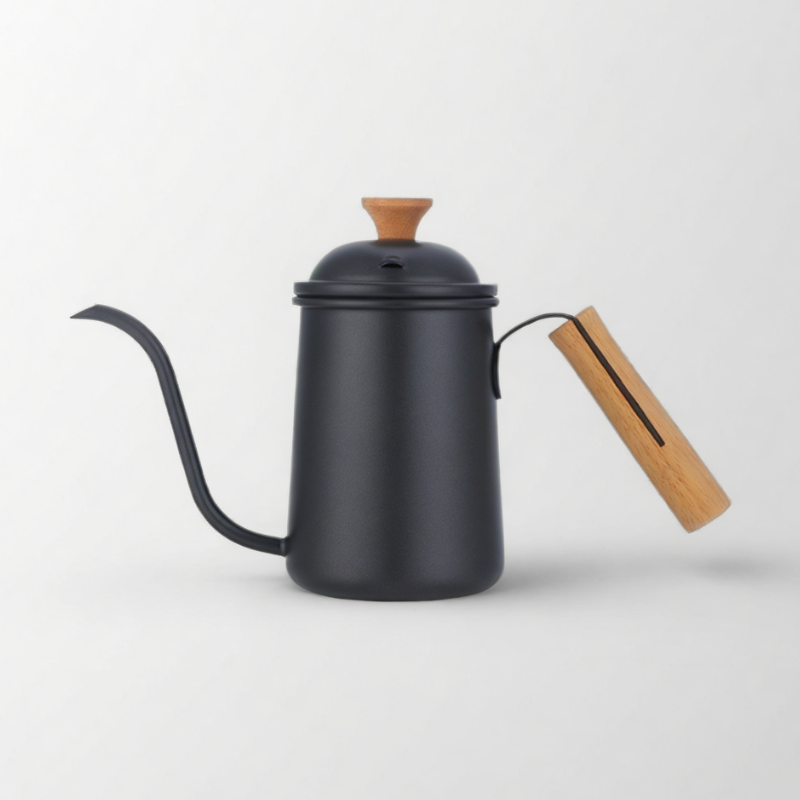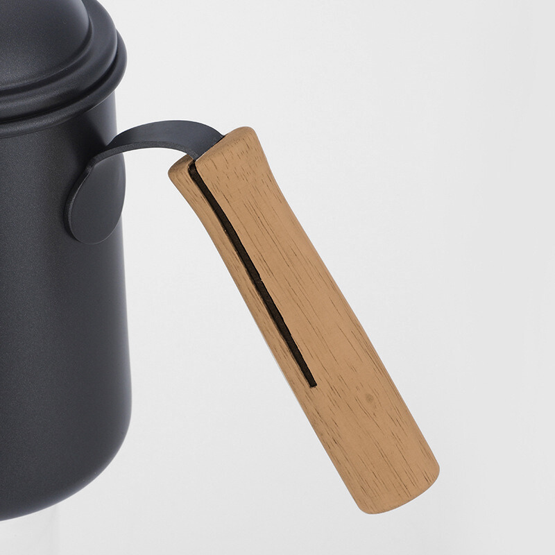 650ml Black Coffee Kettle With Wooden Handle And Lid