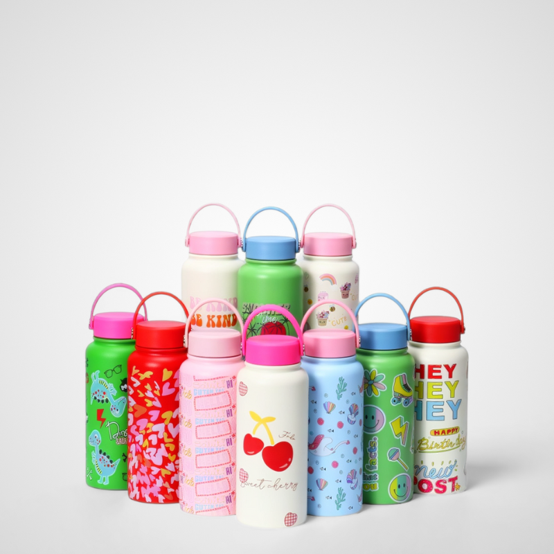 Our stainless steel bottles utilize state-of-the-art double-wall vacuum insulation, keeping beverages hot for up to 12 hours and cold for up to 24 hours. This ensures your favorite drinks maintain the perfect temperature throughout the day.