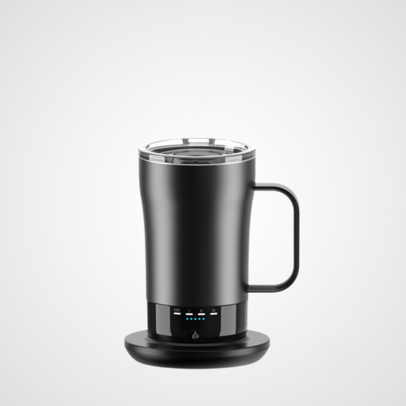 Temperature Control Heated Travel Mug Smart Self Heating Coffee Mug with App Controlled LED Display and Wireless Combo Charger